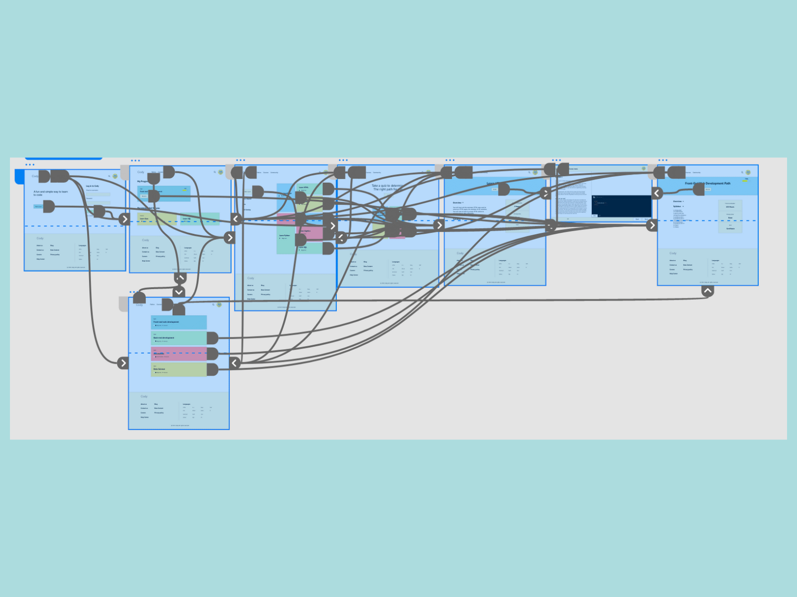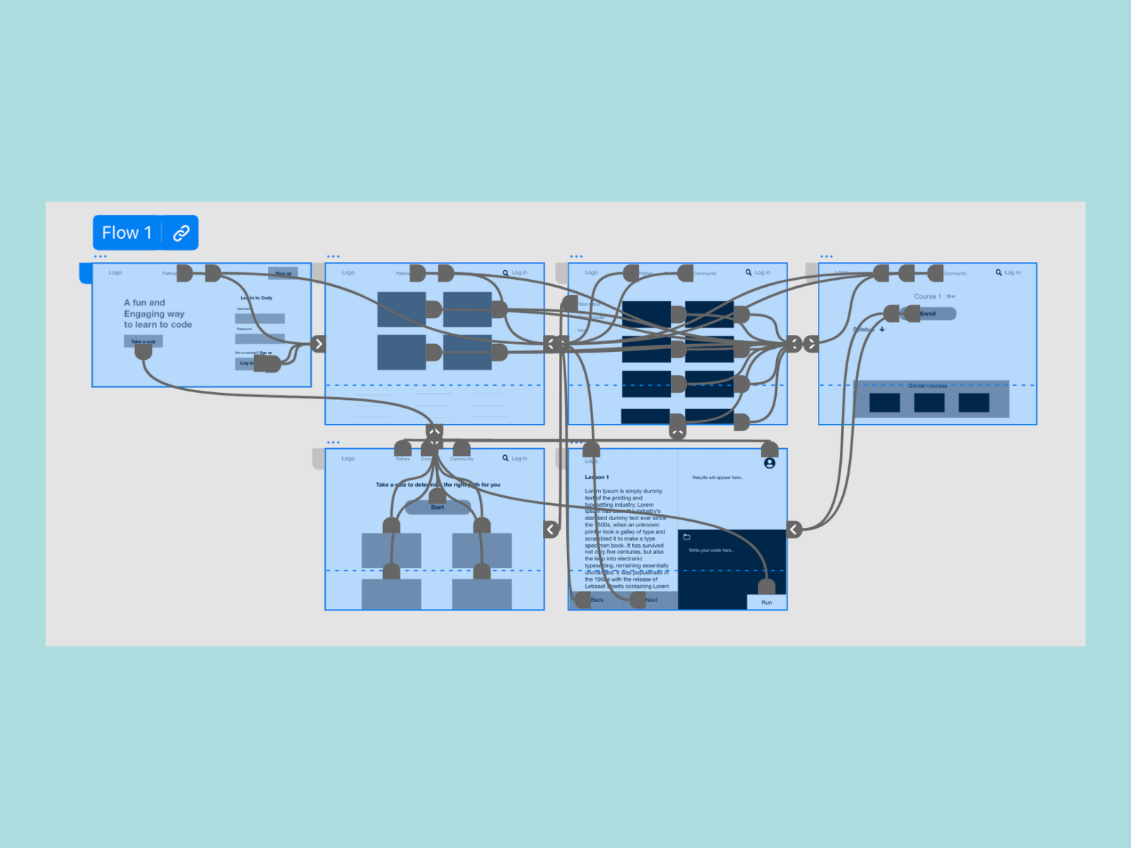 I connected all of the screens involved in the primary user flow of logging in, to taking a quiz to start learning.