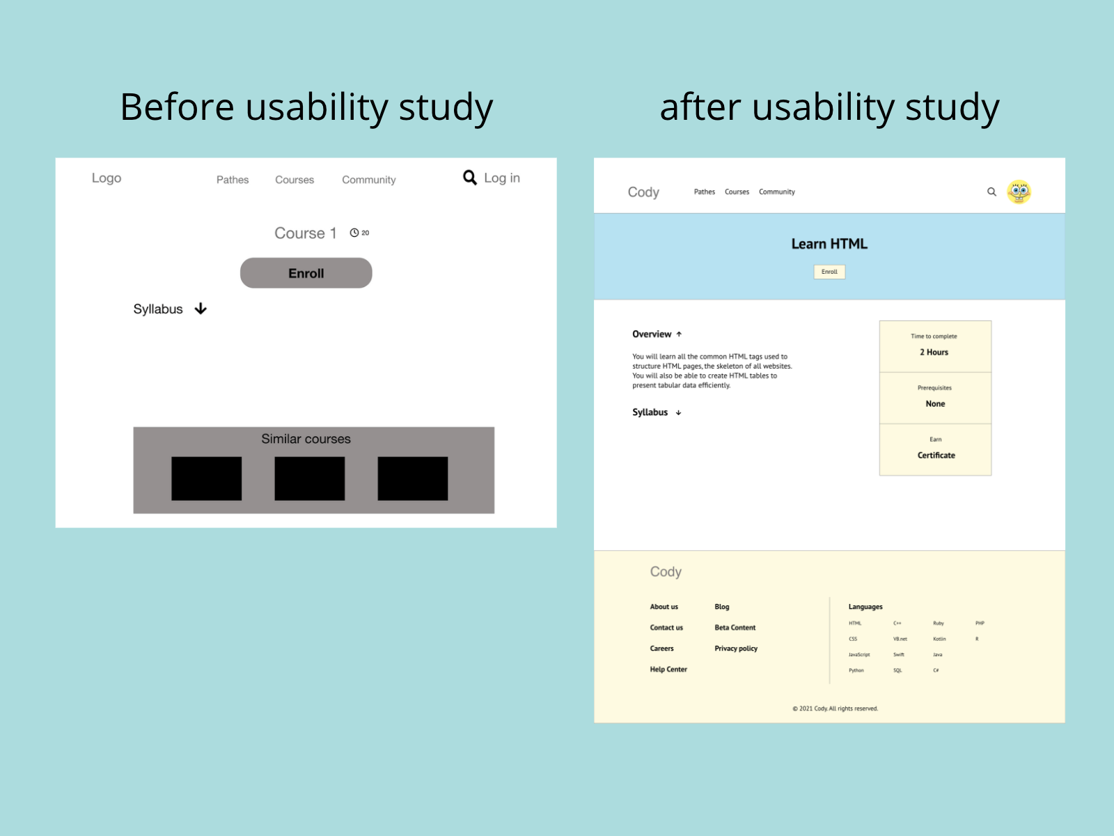 Based on the insights from the usability study, I made changes to improve the course page.