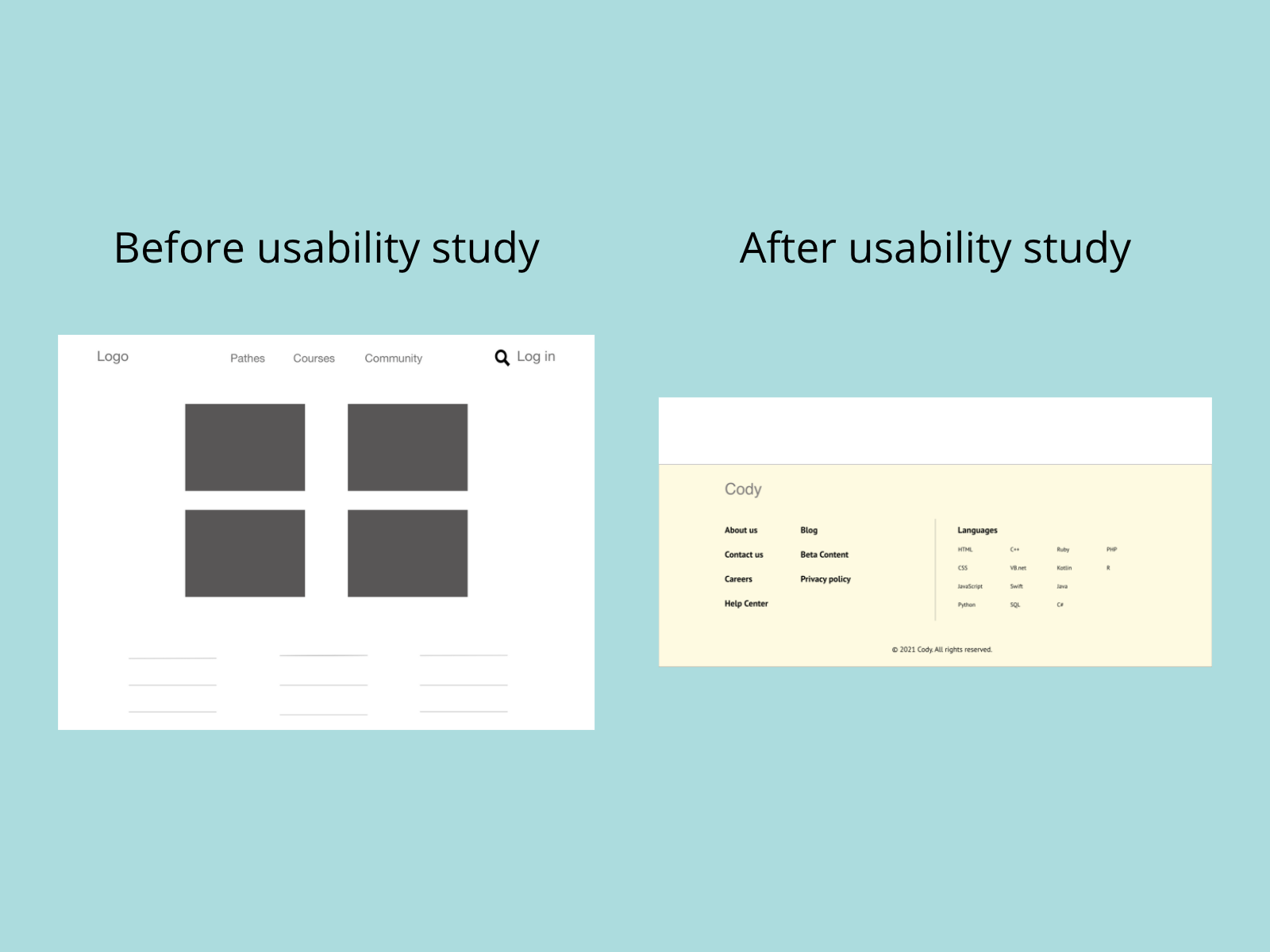 Based on the insights from the usability study, I made changes to improve the website footer.