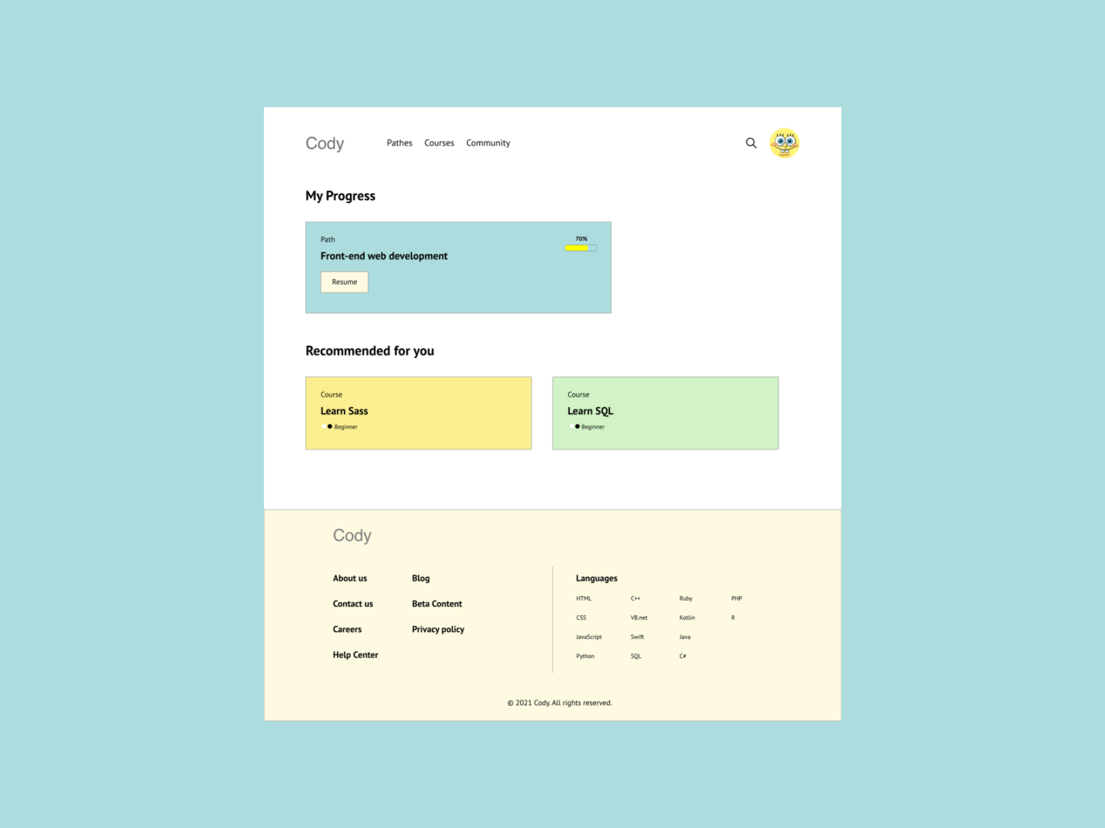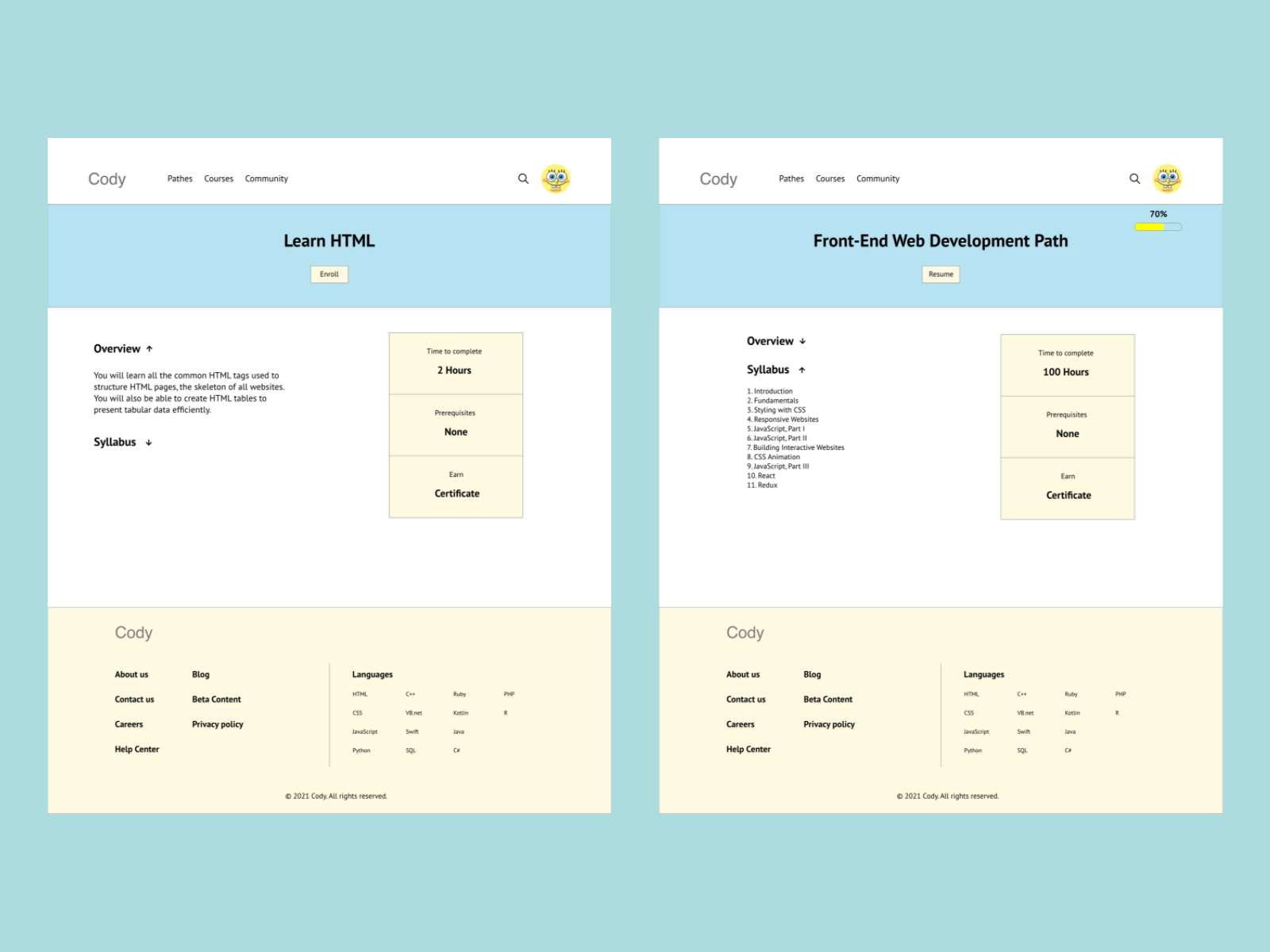 Cody is an online interactive website for learning to code. Cody offers free courses in 14 programming languages like javaScript, Python and C++.